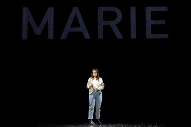 Woyzeck ist die Tragödie eines sozial Deklassierten, Woyzeck ist ein vom Leben gezeichneter, er ist Versuchsobjekt, Niedriglöhner, er wird herabgewürdigt. Schließlich schreitet er – in die Ecke gedrängt – zur Tat. Bei seinem frühen Tod 1837 – zu Beginn des Biedermeier also – hinterließ Georg Büchner Woyzeck als Fragment, offen für Aneignungen. Regisseur David Bösch und Dramaturgin Wiebke Melle haben nun Gerhild Steinbuch eine Ergänzung oder Erweiterung oder Modernisierung des historischen Stoffs schreiben lassen, um das Thema Femizid künstlerisch wie gesellschaftspolitisch mit Woyzeck / Marie bearbeiten zu können. Es ist die Einsamkeit, die als Motiv und Verbindung der beiden Stücke Woyzeck / Marie steht.